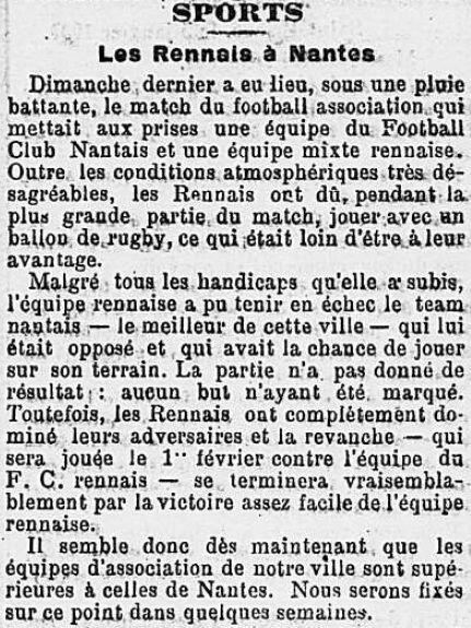 La rivalité sportive entre Rennes et Nantes, c'est pas récent-récent, hein ! On est trouve des traces jusque dans cet hallucinant article de 1903.
