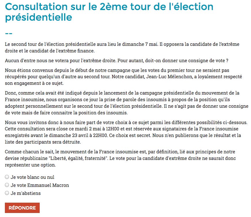 Bref, on s'en fout. C'est désormais vraiment anecdotique et je fais confiance aux "insoumis" pour faire preuve de leur intelligence pour faire le bon choix chacun de leur côté.